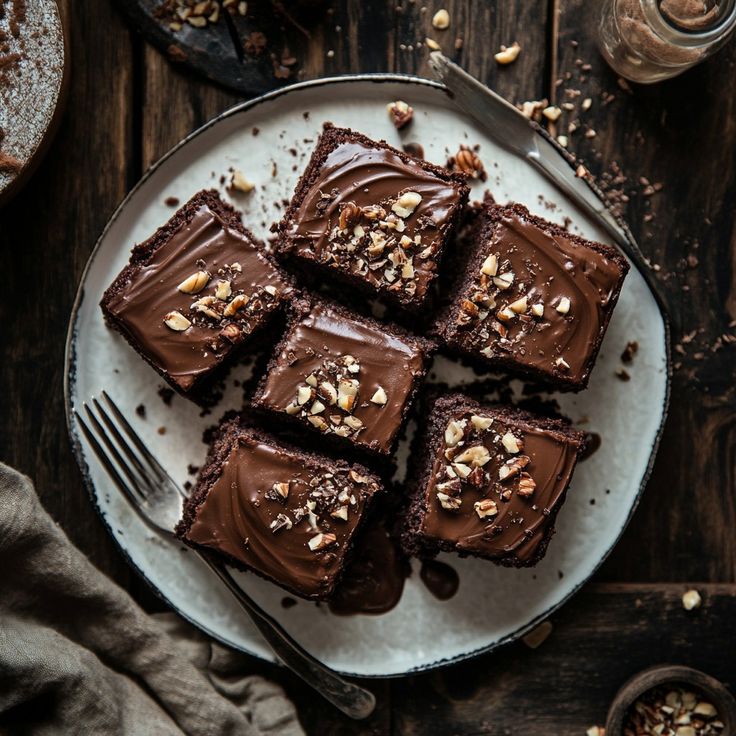 Brownies dengan topping kacang almond panggang yang renyah, memberikan sensasi tekstur dan rasa yang kaya dalam setiap gigitan.